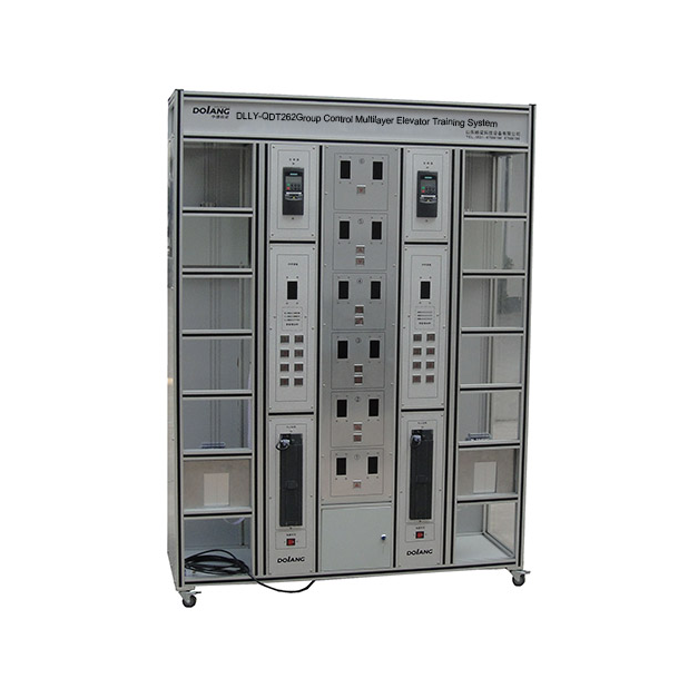 This DLLY-QDT262 Group Control Multilayer Elevator Trainer is composed of two sets of six floors elevators. Each elevator is controlled by one PLC and elevator call outside the car is managed in a unified manner. This approximates building elevator control in real life. Through this training device, students can not only have their fault detection and exclusion capacity improved but also learn the programming principles of multiple online PLCs, so their programming skills are improved.