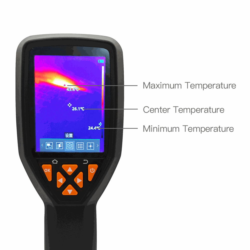 Palette: Iron red、white hot、black hot、rainbow, red hot、high contrast、green hot、volcano