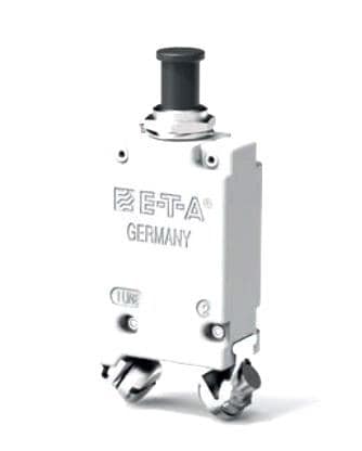 E-T-A Circuit Breakers 413-K14-FN2-40A Thermal Single pole high performance thermal circuit breaker with tease-free, trip-free, snap action mechanism and push/pull on/off manual actuation (M-type TO CBE to EN 60934). An indicator band on the push button clearly shows the tripped/off position. Thr