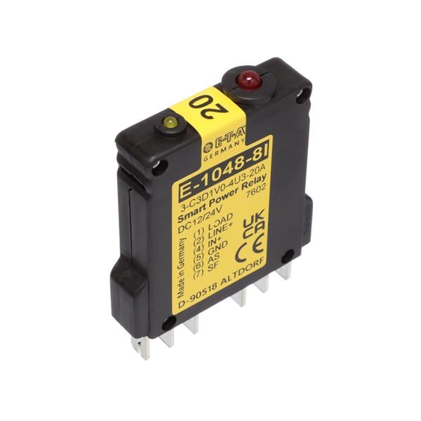 E-T-A Circuit Breakers E-1048-8I3-C3D1V0-4U3-20A SSR - Solid State Relays The Smart Power Relay E-1048-8I.- is a remotely controllable electronic load disconnecting relay with three functions in a single unit: electronic relay, electronic overcurrent prodection, status indication. The 7 pin INLINE version is designed for u