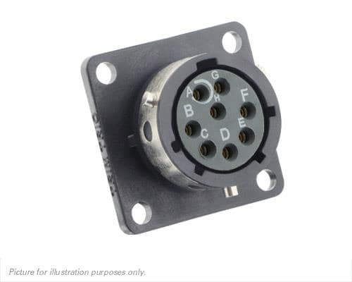 Eaton Souriau-Sunbank UTGX012E8SW Receptacles Square flange receptacle, without backshell, with 8 female solder contacts, IP68/69K in unmated conditions, keying W
