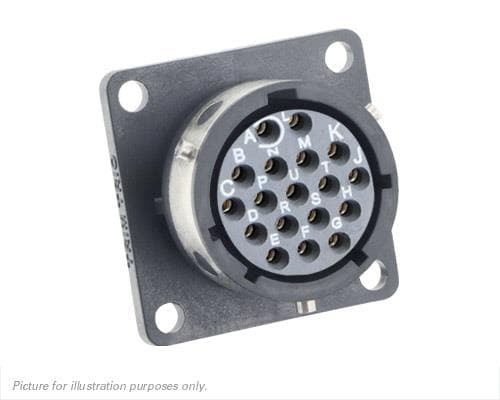 Eaton Souriau-Sunbank UTGX014D18SW Receptacles Square flange receptacle, without backshell, with 18 female PCB contacts, IP68/69K in unmated conditions, keying W