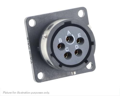 Eaton Souriau-Sunbank UTGX014D5SW Receptacles Square flange receptacle, without backshell, with 5 female PCB contacts, IP68/69K in unmated conditions, keying W