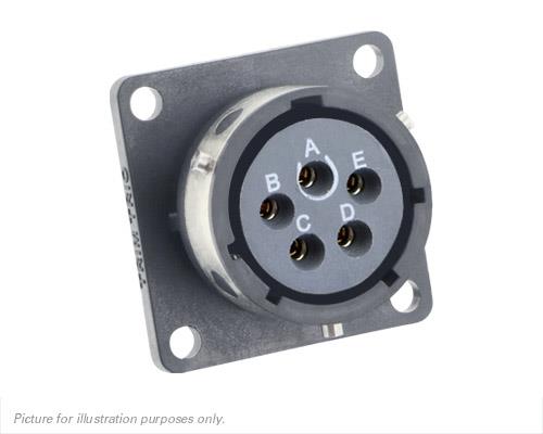 Eaton Souriau-Sunbank UTGX014E5SW Receptacles Square flange receptacle, without backshell, with 5 female solder contacts, IP68/69K in unmated conditions, keying W