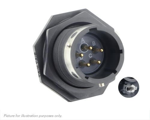 Eaton Souriau-Sunbank UTGX714D5P32 Receptacles Jam nut receptacle & hold down clips,without backshell, with 5 male PCB contacts, IP68/69K in unmated conditions