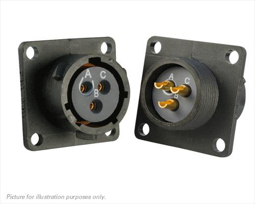 Eaton Souriau-Sunbank UTS012E3SY Receptacles Plastic square flange receptacle, without backshell, with 3 female solder contacts, IP68/69K in unmated conditions, keying Y