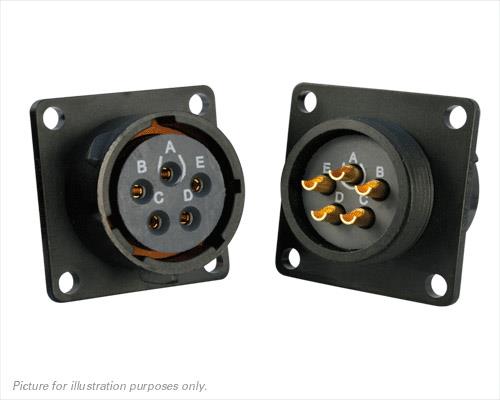 Eaton Souriau-Sunbank UTS014E5SZ Receptacles Plastic square flange receptacle, without backshell, with 5 female solder contacts, IP68/69K in unmated conditions, keying Z