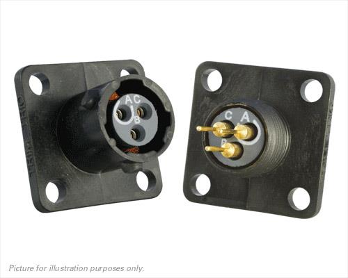 Eaton Souriau-Sunbank UTS08D3AS Receptacles Plastic square flange receptacle, without backshell, with 3 female PCB contacts, IP68/69K in unmated conditions