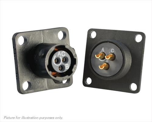 Eaton Souriau-Sunbank UTS08E3SX Receptacles Plastic square flange receptacle, without backshell, with 3 female solder contacts, IP68/69K in unmated conditions, keying X