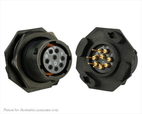Eaton Souriau-Sunbank UTS712D8SW Receptacles Plastic jam nut receptacle, without backshell, with 8 female PCB contacts, IP68/69K in unmated conditions, keying W