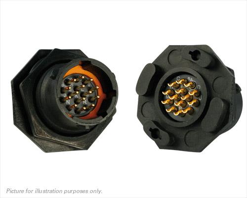 Eaton Souriau-Sunbank UTS712E14PW Receptacles Plastic jam nut receptacle, without backshell, with 14 male solder contacts, IP68/69K in unmated conditions, keying W