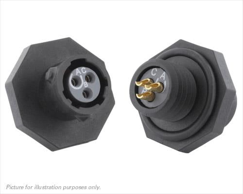 Eaton Souriau-Sunbank UTS78E3SM12 Receptacles Plastic threaded receptacle, without backshell, with 3 female solder contacts, IP68/69K in unmated conditions