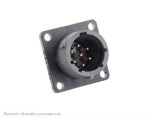 Eaton Souriau-Sunbank UTSX010D7PW Receptacles Square flange receptacle, without backshell, with 7 male PCB contacts, IP68/69K in unmated conditions, keying W