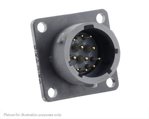 Eaton Souriau-Sunbank UTSX014D12PW Receptacles Square flange receptacle, without backshell, with 12 male PCB contacts, IP68/69K in unmated conditions, keying W