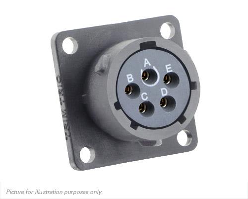 Eaton Souriau-Sunbank UTSX014E5SW Receptacles Square flange receptacle, without backshell, with 5 female solder contacts, IP68/69K in unmated conditions, keying W