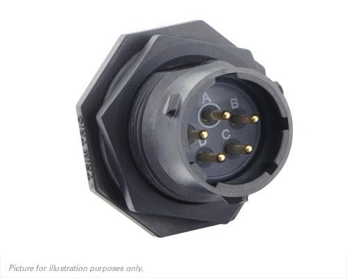 Eaton Souriau-Sunbank UTSX714E5PW Receptacles Jam nut receptacle, without backshell, with 5 male solder contacts, IP68/69K in unmated conditions, keying W