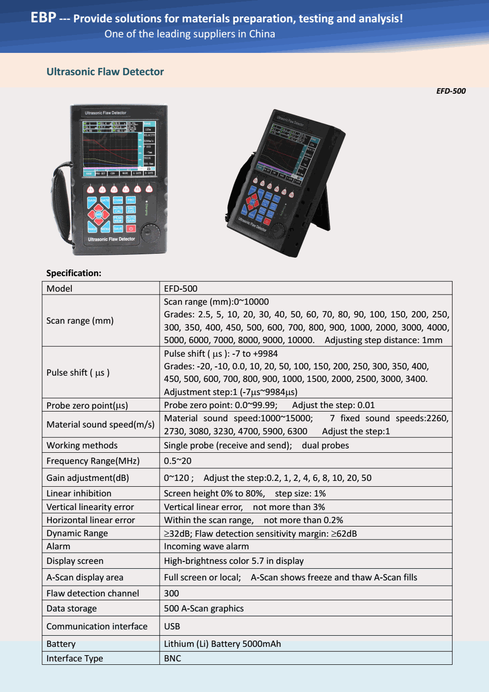 Dynamic Range: >=32dB; Flaw detection sensitivity margin: >=62dB