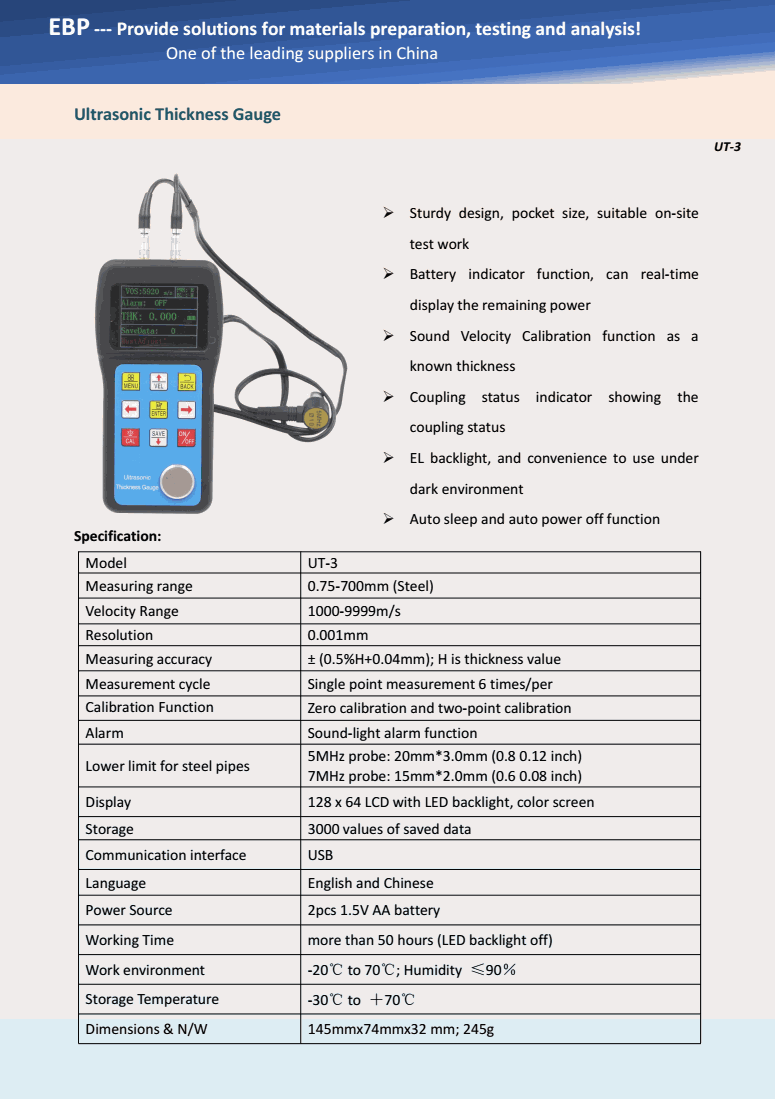 Measuring accuracy: ± (0.5%H+0.04mm); H is thickness value