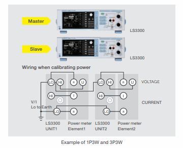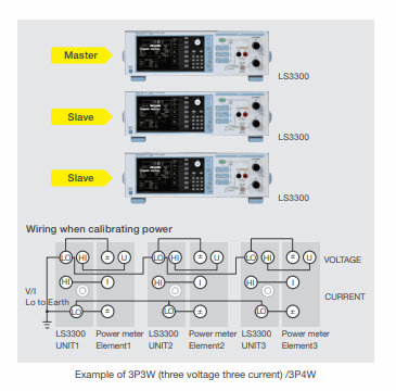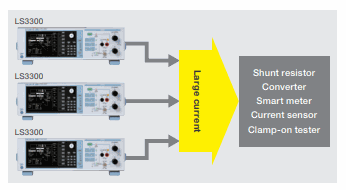 When users synchronize three units and connect their output in parallel, the system can output up to 180 A, when [Hi Current] is specified in the Wiring menu. LS3300 supports devices requiring large current such as a current sensor, smart meter, etc.
