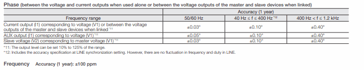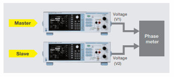 Since the LS3300 guarantees the phase accuracy between units of the master unit voltage (V1) and the slave unit voltage (V2), it can inspect a phase meter. It is equipped with the phase accuracy of ±0.03°and the minimum resolution of 0.001°and allows users to specify an arbitrary value for Lead and Lag of the slave unit voltage (V2) against the master unit voltage (V1).