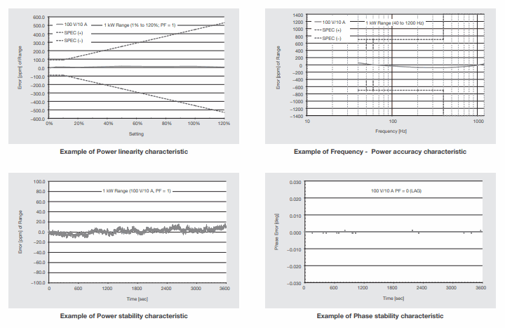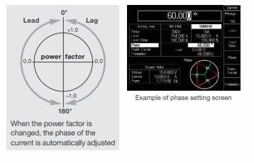 The power factor is an important element when users judges the energy utilization efficiency of a device. When a power meter is calibrated, accordingly, the power factor value is inspected as well as a power value. The LS3300 covers the range of the power factor from −1.0 to 0 to +1.0 (lead) and from −1.0 to 0 to +1.0 (lag). It also allows the user to adjust the phase angle between voltage and current.
