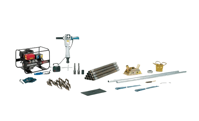 Drilling can be executed fast and efficient applying the so-called lost cone drilling method. Royal Eijkelkamp developed a manually controlled set using an electrical percussion hammer to hammer the lost-cone and the accompanying casing into the soil.