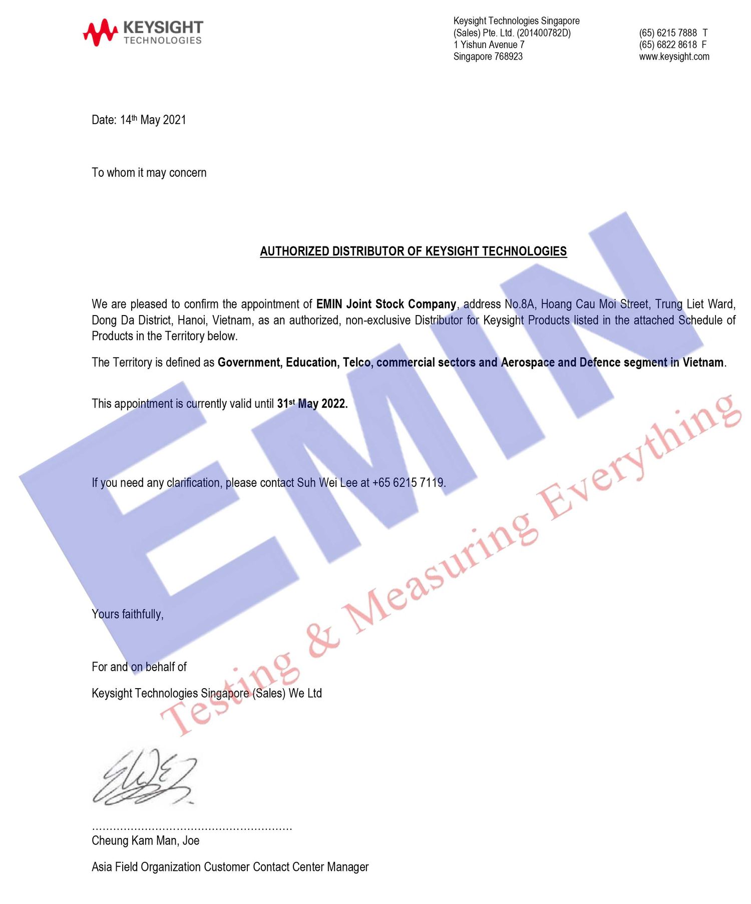 EMIN Trở Thành Nhà Phân Phối Trực Tiếp Của Keysight Tại Việt Nam Từ Tháng 11/2020 | EMIN.CO.TH