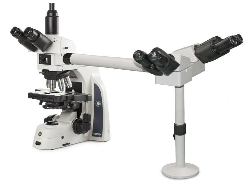 One trinocular head and two binocular head with 30°inclined Ø 30 mm tubes and SWF 10x/25 mm eyepieces