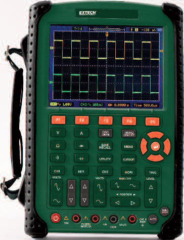 Complete with two 1X/10X oscilloscope probes, test leads, 7.4V Li-Ion battery, universal AC charger, and carrying case
