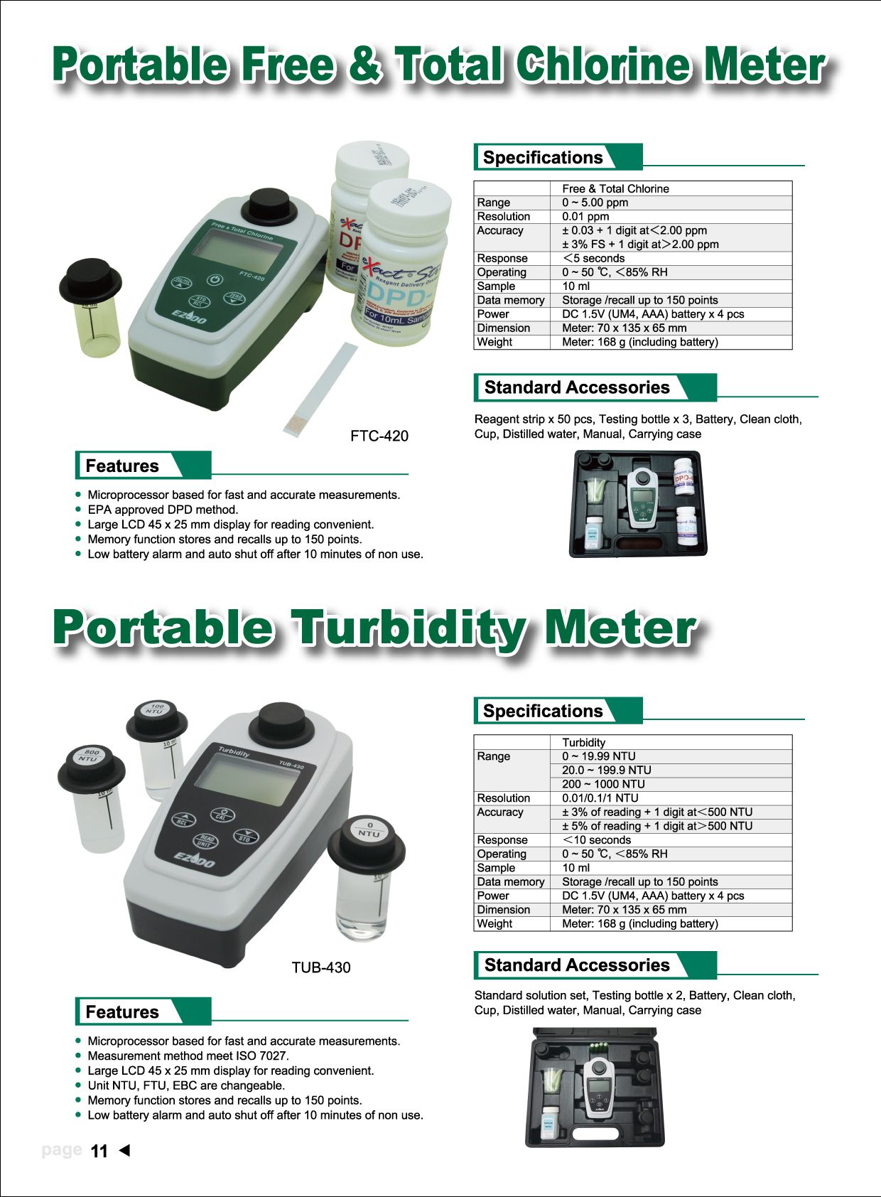 EZDO FTC-420 Portable Free & Total Chlorine Meter (0〜5.00 ppm) | EMIN.CO.TH
