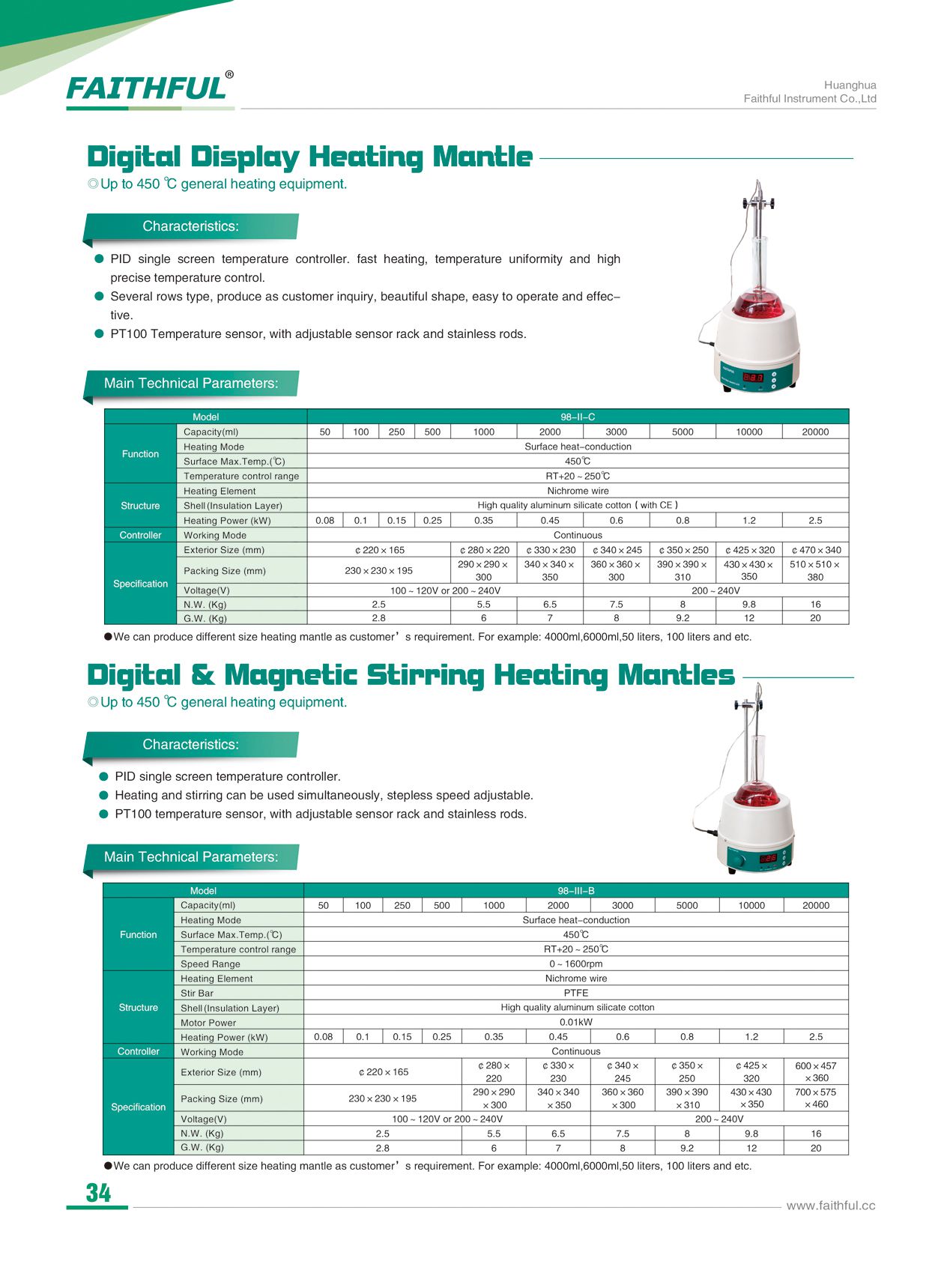 Faithful 98-II-C Digital Display Heating Mantle (20000ml; 450℃; 2.5kW) | EMIN.CO.TH