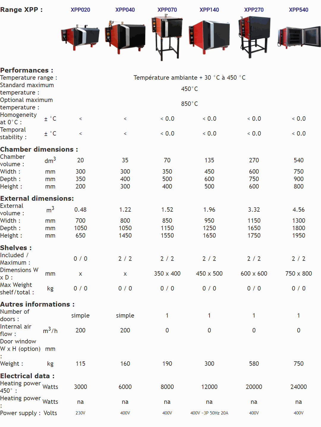 France-Etuves XPP540 High Temperature Oven (540 liters, 450°C) | EMIN.CO.TH