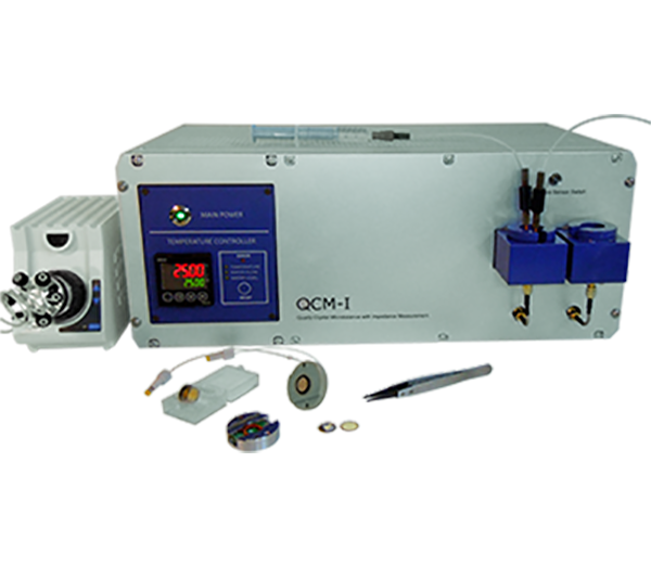 The QCM-I unit is a high sensitivity mass sensor which measures the change in frequency of a quartz crystal resonator