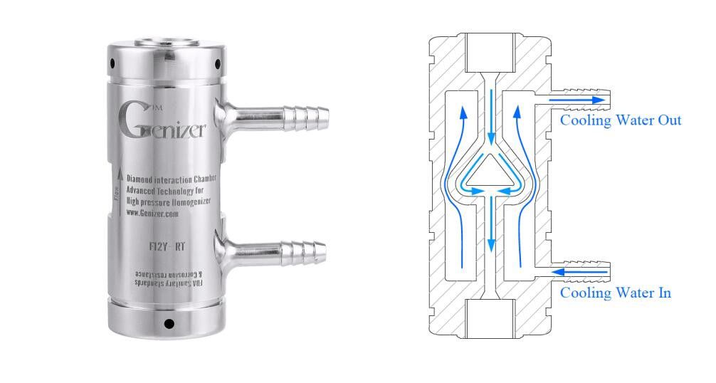 The Y-type interaction chamber is widely used in the preparation of pharmaceutical emulsions because it minimizes cavitation and produces exquisite, stable particle size and PDI (poly dispersity index) control ability. Genizer and Microfluidics Corp. are the main manufacturers of the diamond interaction chamber. At present, the Y-type diamond interaction chamber is mainly used in high-end nanotechnology, and it occupies more than 90% of the US pharmaceutical industry. Genizer’s temperature-controlled interaction chamber avoids temperature surges and enables working pressure of up to 60,000 psi.