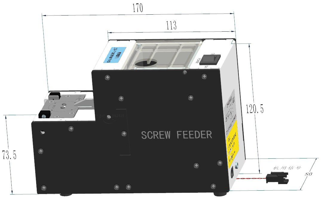 1. This product is a mini machine screw feeder (with signal output), suitable for a variety of automatic screw lock equipment feeding system, with signal terminal, easy to communicate with the equipment.