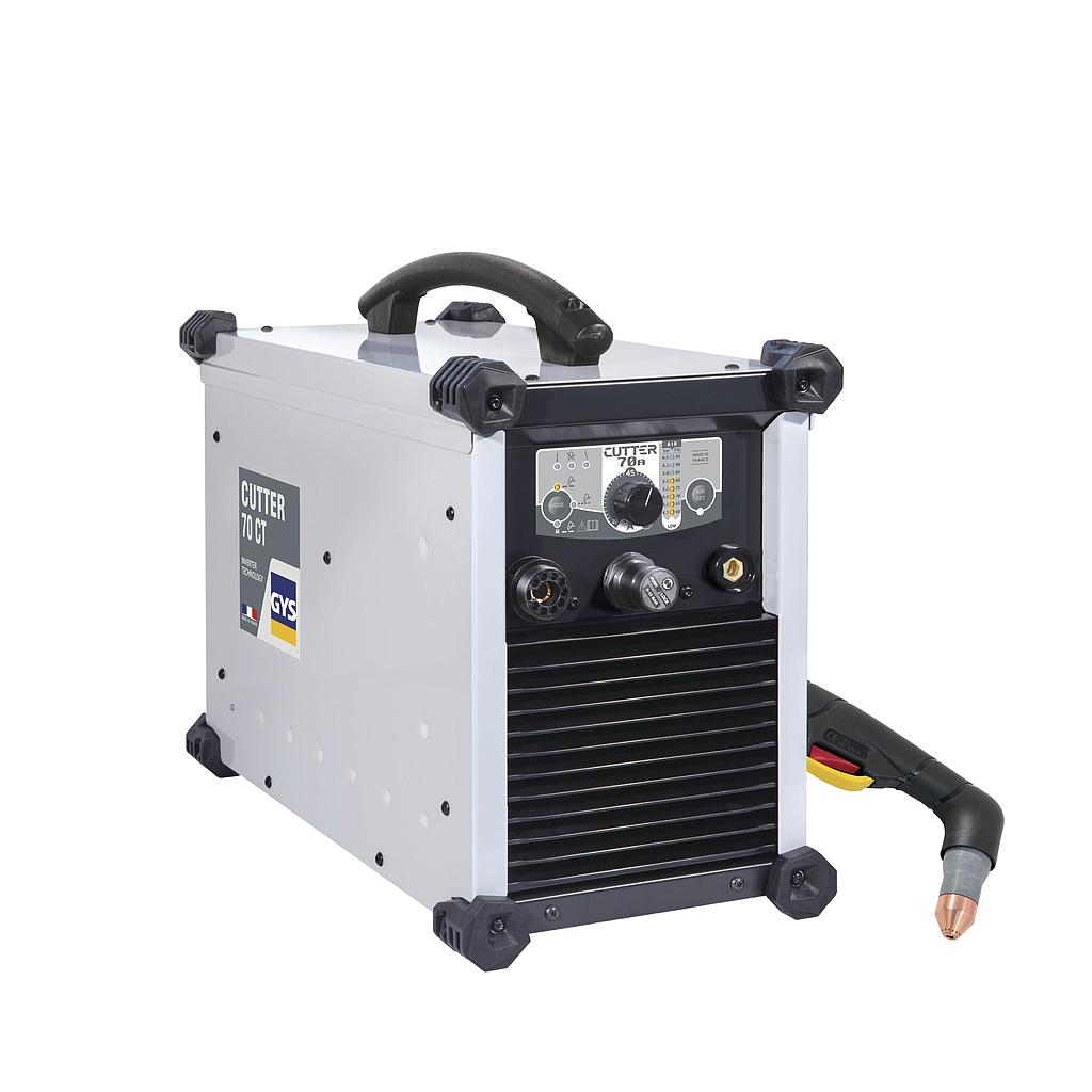 The CUTTER 70 CT is a 70 A plasma cutter with a cutting capacity of 35 mm thick on a multitude of materials. The HF-free arcing system preserves and increases the lifetime of consumables. Designed to be used in difficult environments, it has very robust mechanics and a user friendly control panel. It is prewired for use on automatic cutting tables.