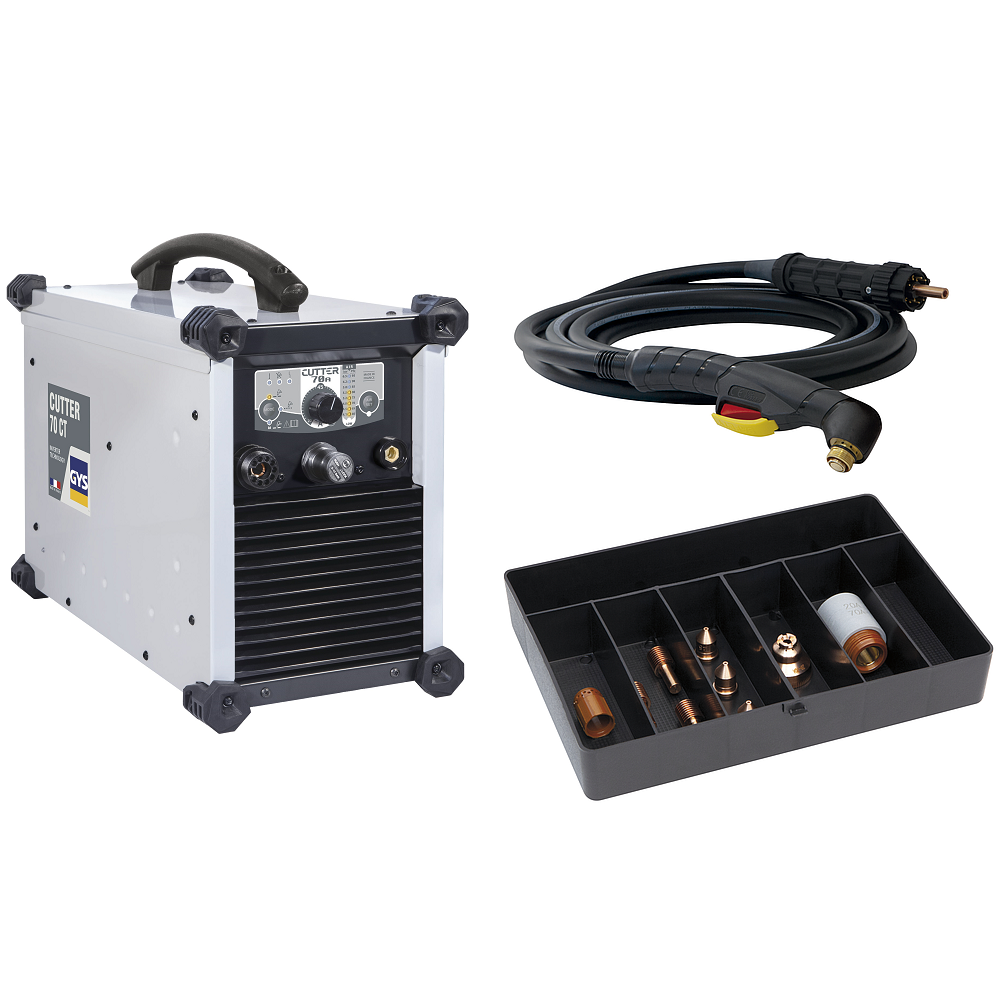 The CUTTER 70 CT is a 70 A plasma cutter with a cutting capacity of 35 mm thick on a multitude of materials. The HF-free arcing system preserves and increases the lifetime of consumables. Designed to be used in difficult environments, it has very robust mechanics and a user friendly control panel. It is prewired for use on automatic cutting tables.