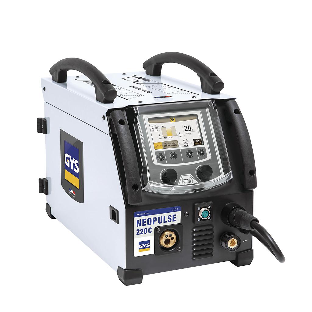 The NEOPULSE 220 C is a single-phase pulsed MIG/MAG generator with digital technology. Designed for the highest performance level using the latest technology, it features numerous synergic curves and exceptional arc quality/performance. Intuitive and highly functional, the digital interface allows for quick and easy modifications of the welding parameters. Fitted with an accurate and powerful 4 drive roll feeding system, the NEOPULSE 220 C offers manufacturers maximum productivity.