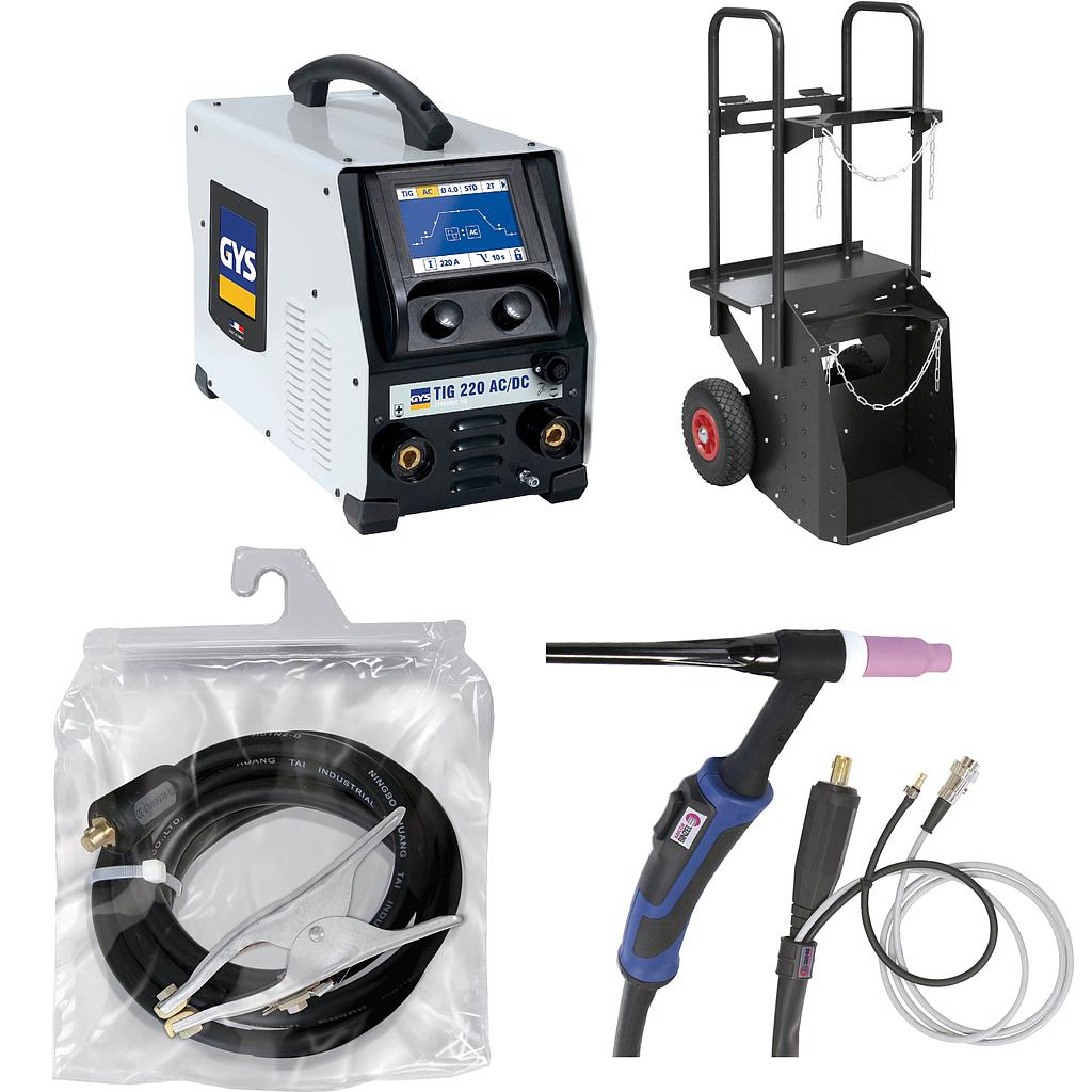 Professional, single phase, 220 Amp AC/DC TIG welding machine, suitable for welding most materials including steel, stainless, aluminium and copper. Manufactured in France.