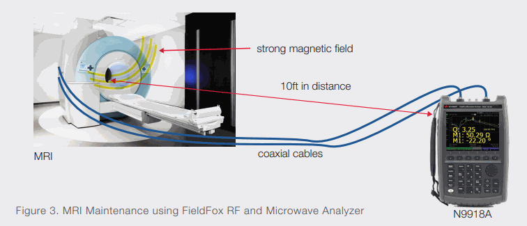 For every maintenance cycle, the technician would set this up then go back and forth between the instrument and the MRI machine to adjust the coils, because the instrument had to be far enough away from the MRI machine’s magnetic field when measurements were made. To solve these challenges, the company found a solution with Keysight’s FieldFox handheld RF and microwave analyzer.