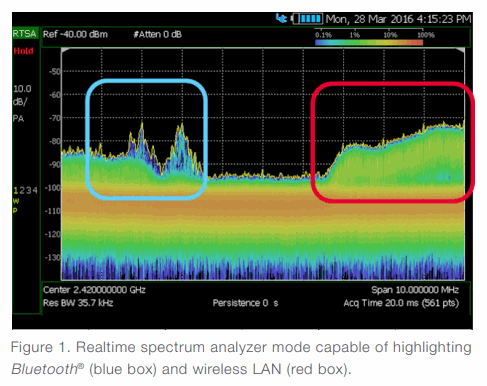 With the number of connected devices in a hospital environment on the rise, interference problems have become increasingly severe. For example, consumer products like cellphones or tablets can cause wireless interference with medical equipment, such as MRI machines, CT machines, and other physiological monitoring devices. The Real-Time Spectrum Analysis (RTSA) software found in the FieldFox is an effective tool for interference hunting and signal monitoring.