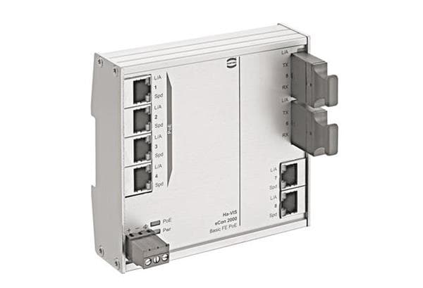 HARTING 24020062120 Unmanaged Ethernet Switches Ha-VIS eCon 2062BT-AD-P - unmanaged switch with 6 RJ45 (4 PoE), 2 SC Duplex MM Fiber, (extended temp. range) | EMIN.CO.TH