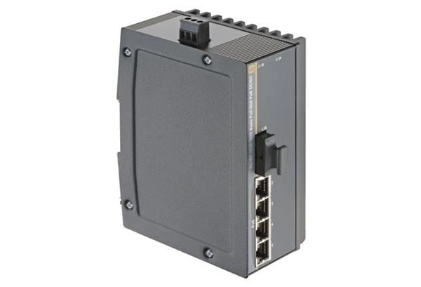 HARTING 24035041220 Unmanaged Ethernet Switches Ha-VIS eCon 3041GBT-AF-PP - unmanaged switch with 4 Gigabit RJ45 (4PoE), 1 SC Duplex SM Fiber, (extended temp. range), with 24/54 V DC Voltage Transformer