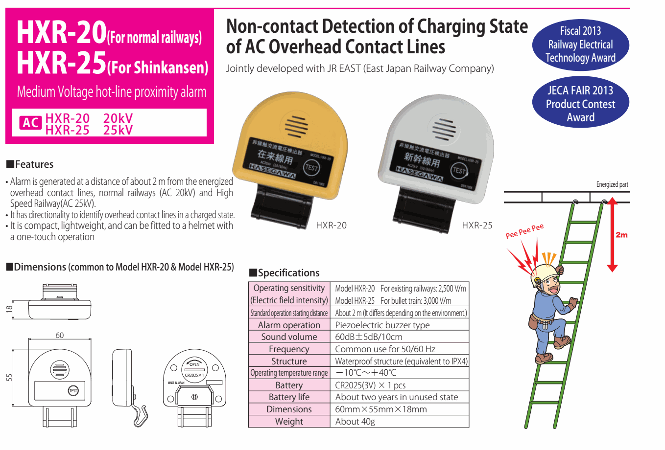 HASEGAWA HXR-20 Medium Voltage Hot-line Proximity Alarm (AC 20kV; 2.500 V/m) | EMIN.CO.TH