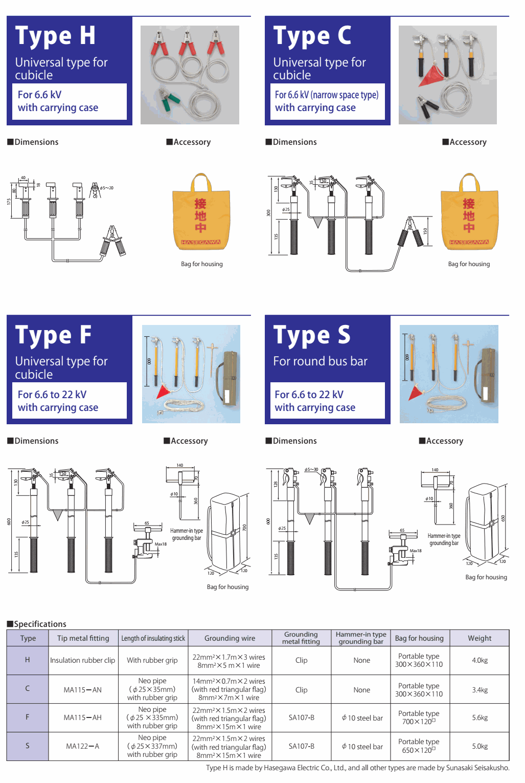 HASEGAWA Type F Grounding Hook Set (6.6~22 kV) | EMIN.CO.TH