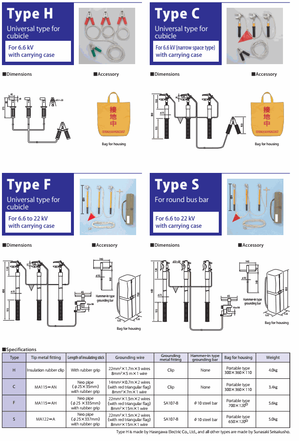 HASEGAWA Type S Grounding Hook Set (6.6~22 kV) | EMIN.CO.TH