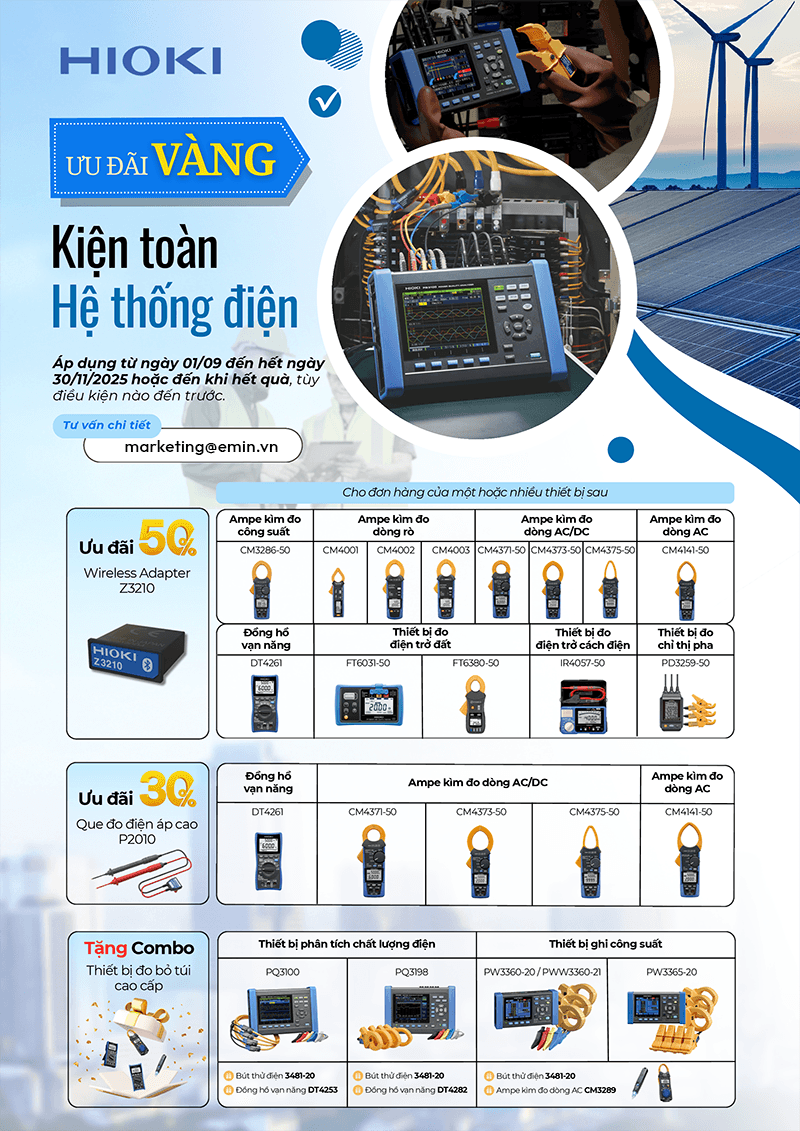 Customers receive 50% off the Wireless Adapter Z3210 when purchasing it with a Hioki Bluetooth-enabled field measuring device. Applicable devices: AC/DC Clamp Meter CM4371-50/ CM4373-50/CM4375-50, AC Clamp Meter CM4141-50, Power Clamp Meter CM3286-50, Leakage Clamp Meter CM4001/ CM4002/ CM4003, Digital Multimeter DT4261, Earth Tester FT6031-50/ FT6380-50, Insulation Resistance Tester IR4057-50, Digital Phase Detector PD3259-50