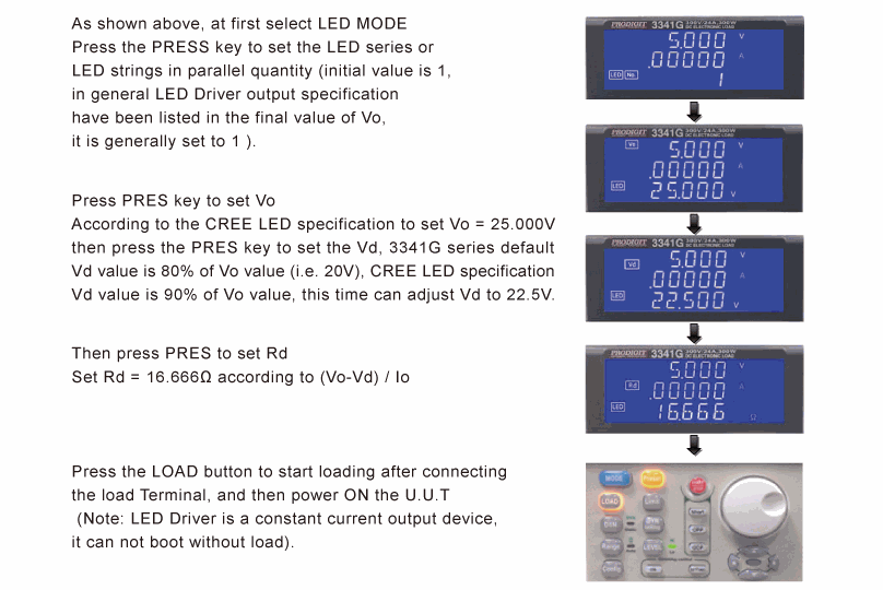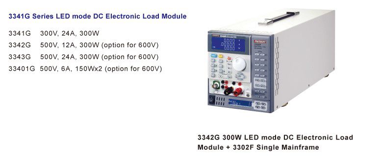 Prodigit introduced 3341G series LED dimmable DC electronic load, including 3341G (300V, 24A, 300WJ, 3342G (500V, 12A, 300W), 3343G (500V, 24A, 300W), 33401G (500V, 6A, 150Wx2), LED drive power for testing and verification. These loads can simulate real LED characteristics, based on LED parameters inputs (including Vd threshold voltage, Rd series resistance, Vo output voltage, etc). Thus, there is no longer any need to connect actual LEDs to the LED drive power supply. It also allows for easy changes in the LED parameters to simulate different number of LEDs in a string, LED specifications or LED brands. It also has the necessary control signal for dimming control of the LED driver, including a 0 to 12V Analog voltage and 0 to 1kHz, 0 to 100% duty cycle output signal which is the best tool to test and verify LED power drivers.