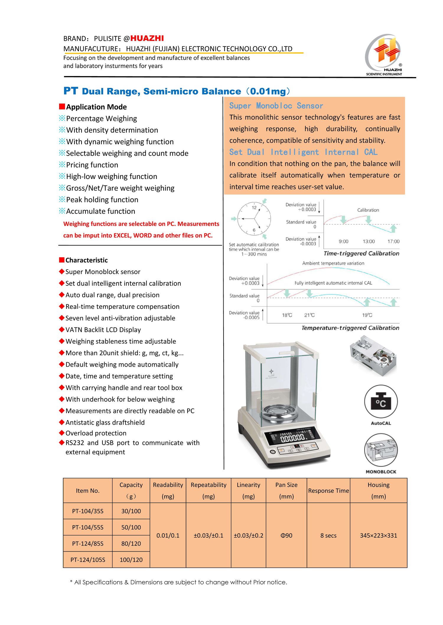 HUAZHI PT-124/85S Semi-micro Balance (80/120g, 0.01/0.1mg) | EMIN.CO.TH