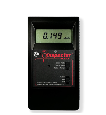 Detector: Halogen-quenched Geiger-Müller tube. Effective diameter 1.75″ (45 mm). Mica window density 1.5-2.0 mg/cm².